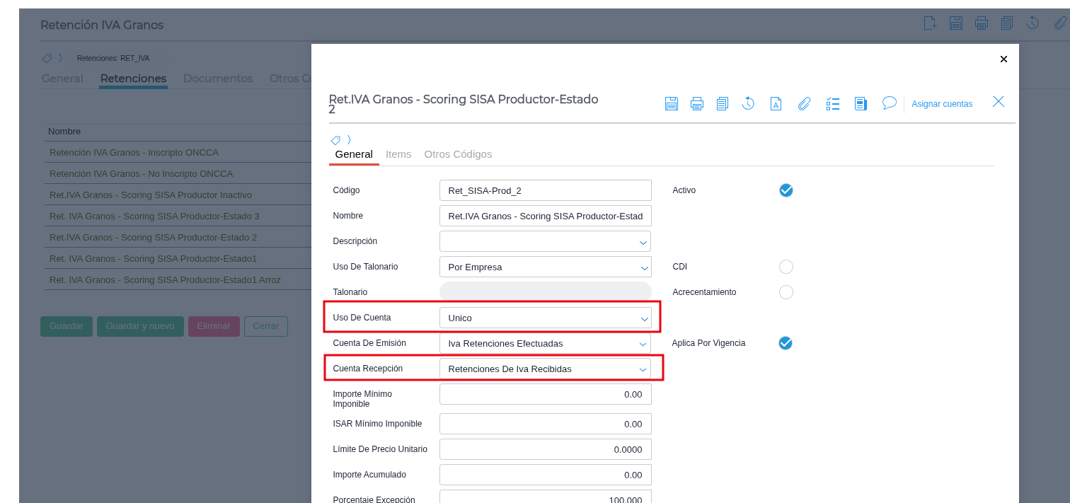 Único: La cuenta contable se define una sola vez, directamente en la pantalla de configuración de la propia retención: