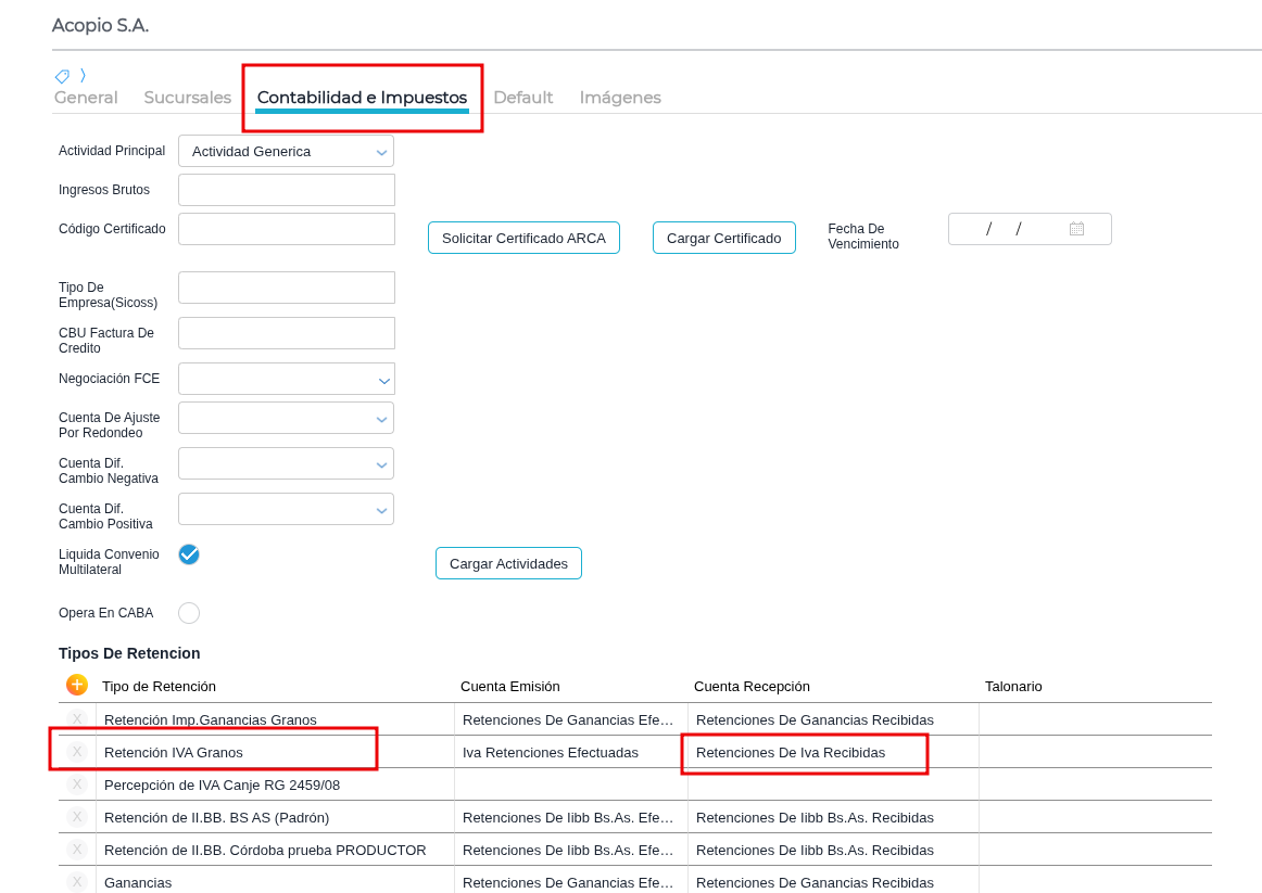 Esta entrada tiene como objetivo detallar cómo se deben configurar las retenciones recibidas en liquidaciones primarias de granos y cómo se deben registrar en el sistema.