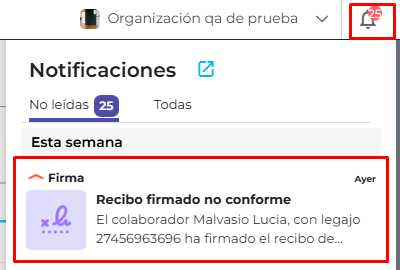 - Desde una notificación. Campana de notificaciones → Notificación Recibo firmado NO conforme