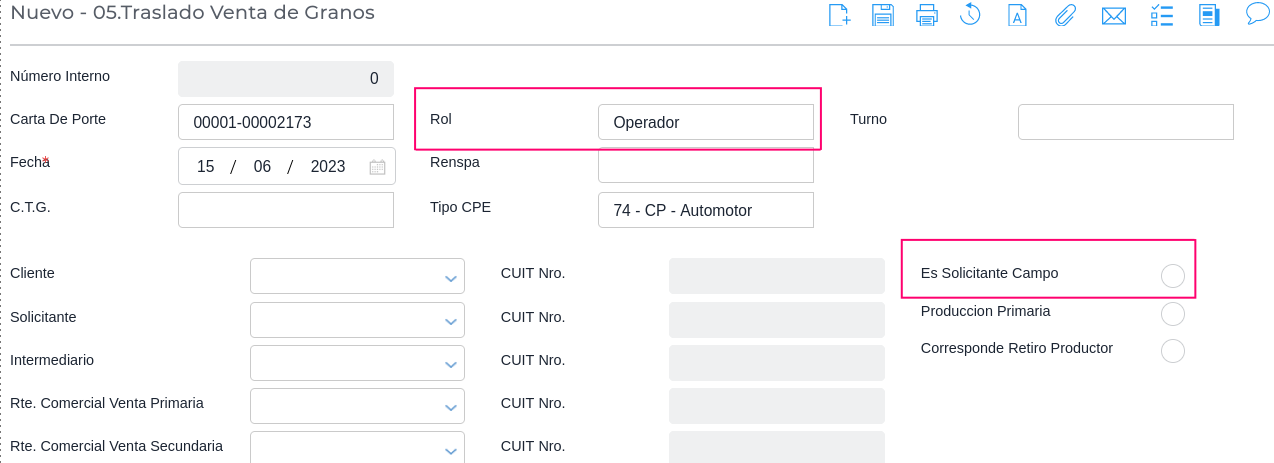 Cuando vamos a emitir un traslado de granos que no sale desde un campo, es decir que sale desde una planta que tiene numero de Ruca, es importante tener en cuenta que por más que sea mercadería de producción propia, el emisor cambia de rol de “Productor” a rol de “Operador”, es ahí cuando se habilitan los origenes con números de plantas y no con localidades nada más.