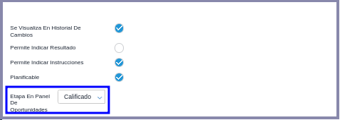 Por ejemplo, en la Actividad “Generar Interés”, se configura que todas las Oportunidades comerciales que estén en esa Actividad y tengan cargado un presupuesto, para que se sumen sus Importes totales y se vean en la Etapa Calificado del Pipeline: