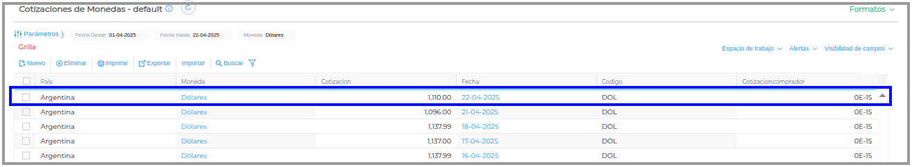 Para obtener entonces los valores que se visualizan dentro de Pipeline, recodemos que se toma la última cotización, ejemplo 1 dólar = $ 1110