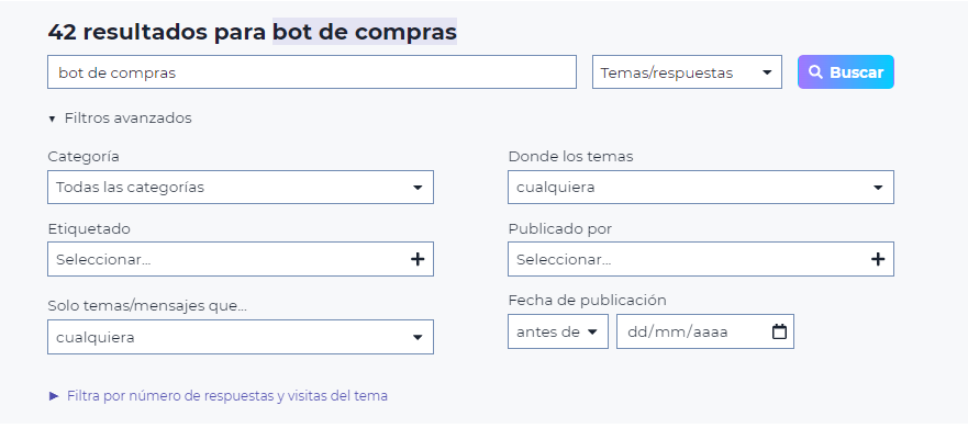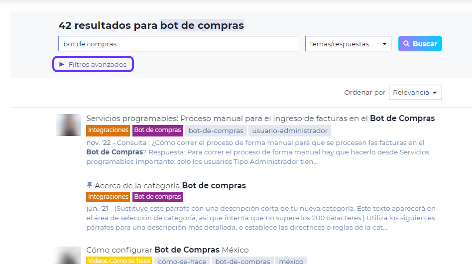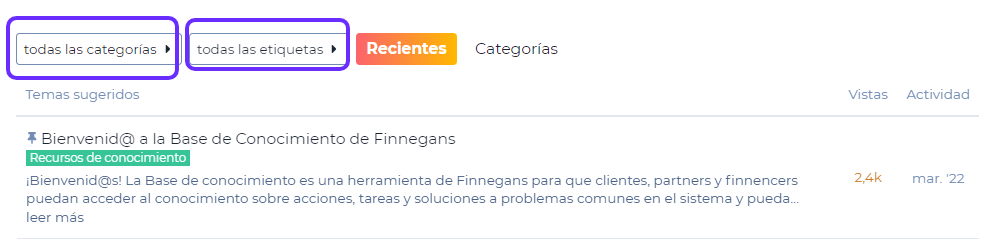 Podrás seleccionar del listado de categorías, etiquetas o más opciones de filtrado de resultados.