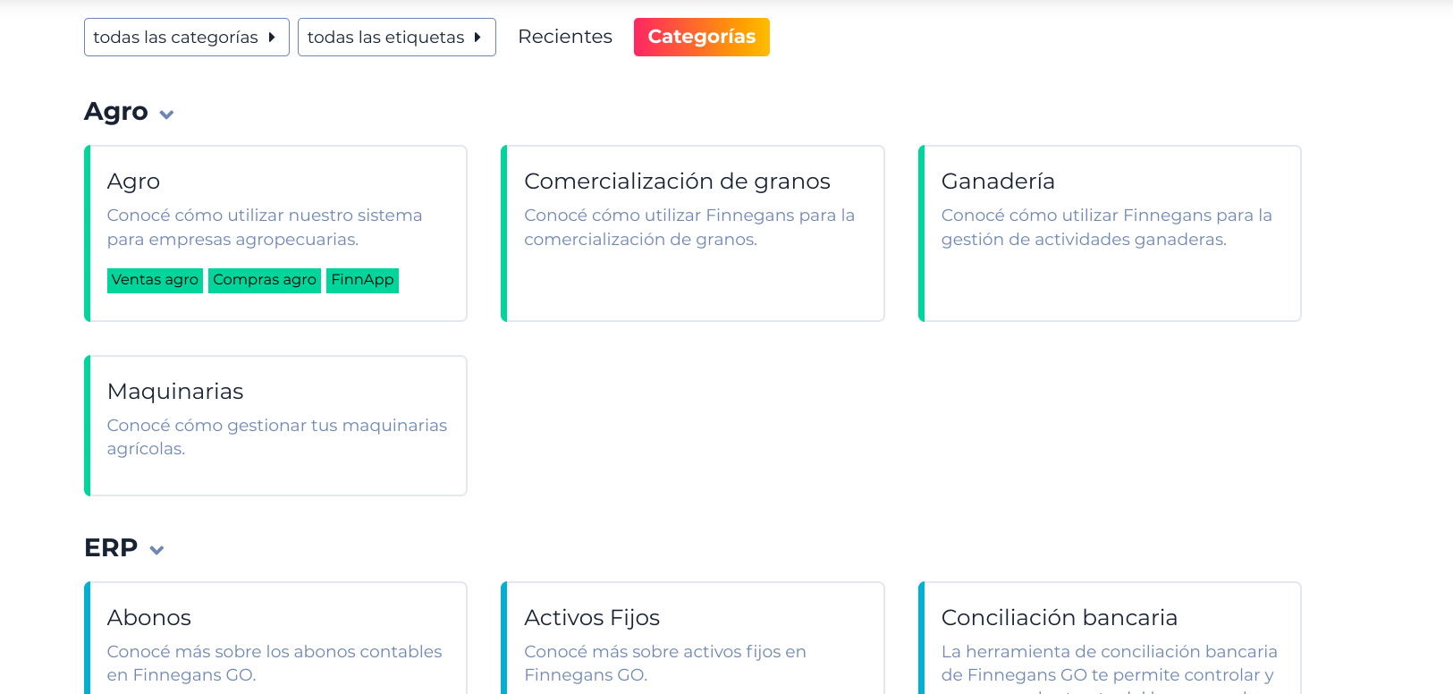 Haz clic en Categorías para ver el listado de todas las categorías existentes.
