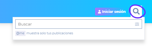 Haz clic en la lupa en el banner superior para abrir la caja de búsqueda.