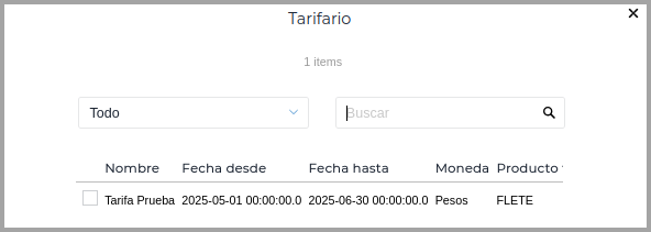 - Se cumple la condición donde organización = Bazax y transporte = camión, muestra tarifario “Tarifario Prueba 2”