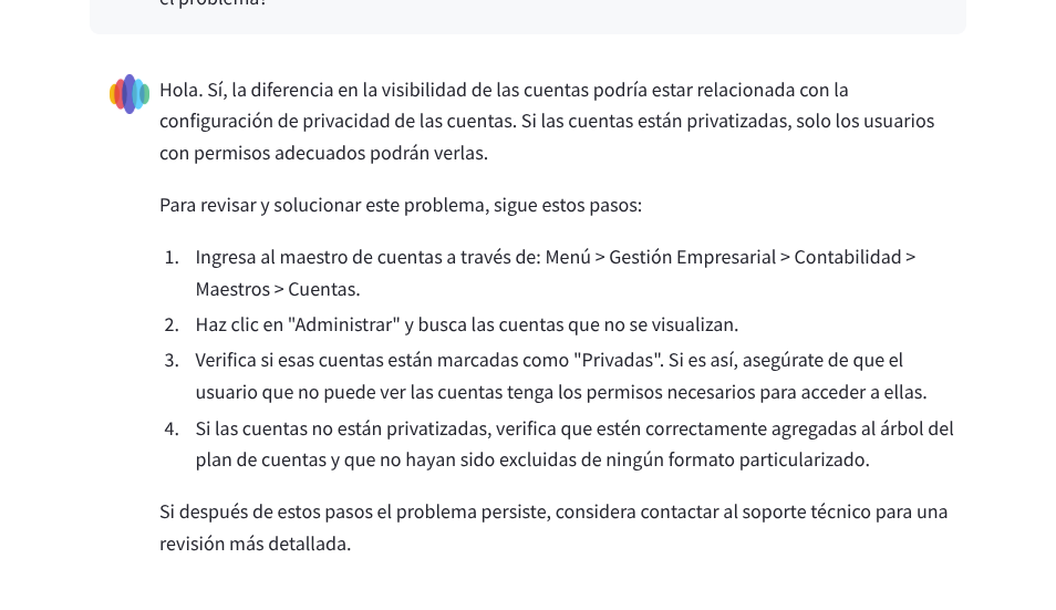 Como todas las IA generativas, requiere conversación y entrenamiento para afinar y mejorar las respuestas que ofrece. Si la respuesta brindada no resuelve tu consulta, ampliá la pregunta y ofrecé más detalles hasta que logre darte la información necesaria.