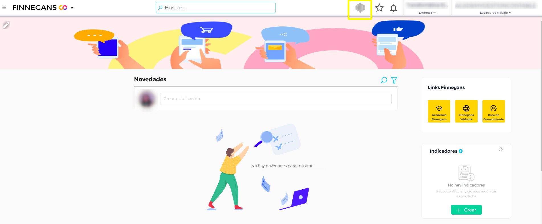 Encontrarás a Finni en la barra superior de Finnegans GO, al lado del botón de Favoritos.