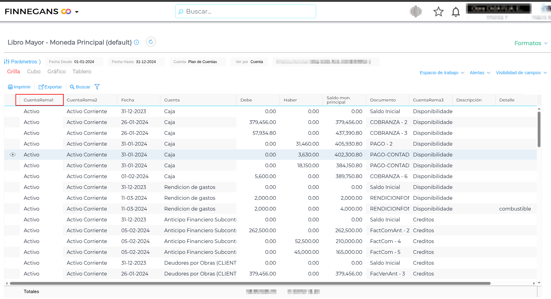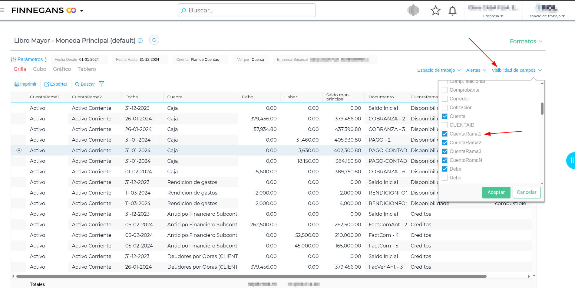 - Marca las casillas para activar la visibilidad de las columnas Cuenta Rama 1, Cuenta Rama 2, Cuenta Rama 3 y Cuenta Rama N.