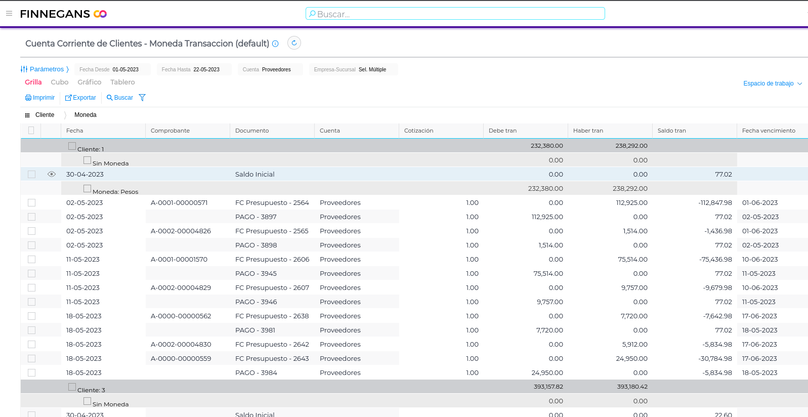 De esta manera, el informe sólo mostrará la información de la cuenta corriente de los clientes que son proveedores.