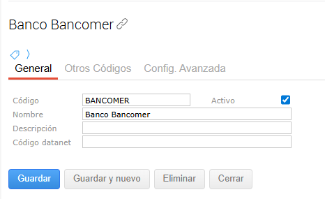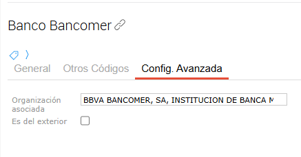 En el banco utilizado en la cobranza, se debe completar la organización asociada en la solapa Configuración avanzada