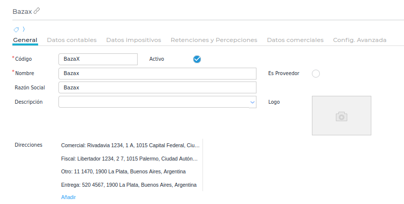 La organización cuenta con una dirección comercial cargada en la solapa general, y cuenta con sucursales cargadas con su dirección correspondiente.