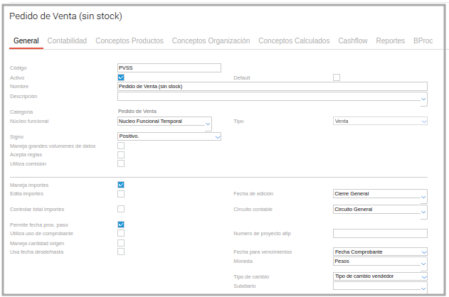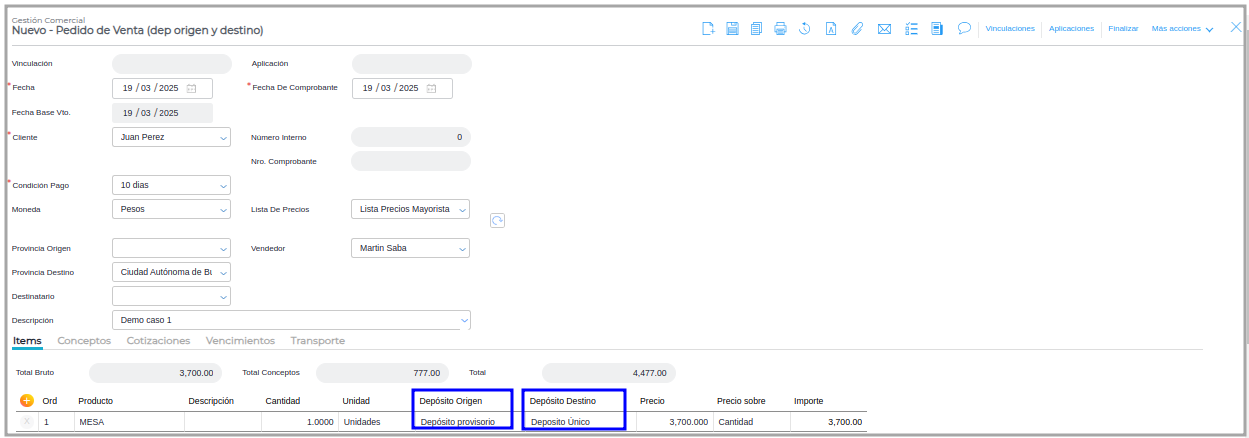 Paso 1 - Ir a Gestión Empresarial ─> Ventas ─> Pedido de Venta donde no se debe indicar Deposito Origen ni Deposito Destino