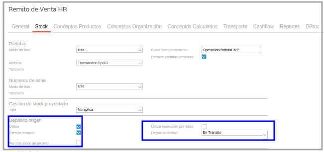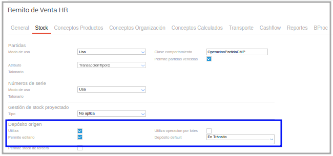 Y en el tipo de documento Remito de Venta se define que se utiliza depósito de origen.