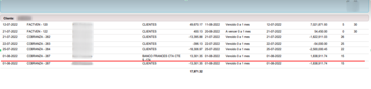 Consulta: En la composición de saldo del cliente se suma una cobranza (a través de una transferencia de tercero) que no debería sumarse.