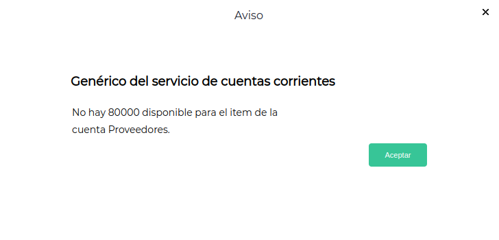 Al aplicar los documentos desde el informe de Composición de Saldos se visualiza el siguiente mensaje: “No hay xxxxx disponible para el ítem de la cuenta Proveedores”