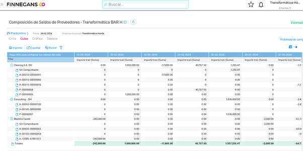 Ir al menú → Gestión Empresarial → Compras → Informes → Composición de saldos