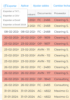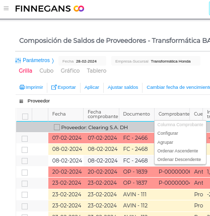 - El informe mostrará todos los comprobantes pendientes de acuerdo a los parámetros seleccionados
