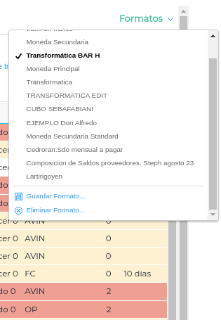 Luego el formato guardado quedará disponible dentro del listado.