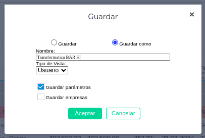 - Guardar Parámetros: al seleccionar, esta opción quedan también guardados los parámetros indicados al inicio de la consulta del informe.