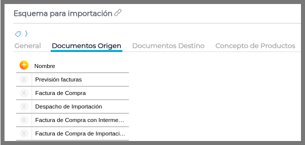 En el Esquema de Absorción para el circuito de importación, es importante recordar que en la solapa Documentos Origen, debe incluirse el documento Despacho de Aduana (Despacho de Importación), además de las facturas.
