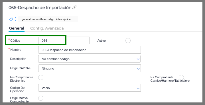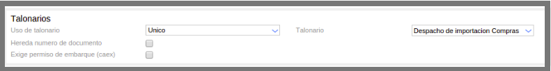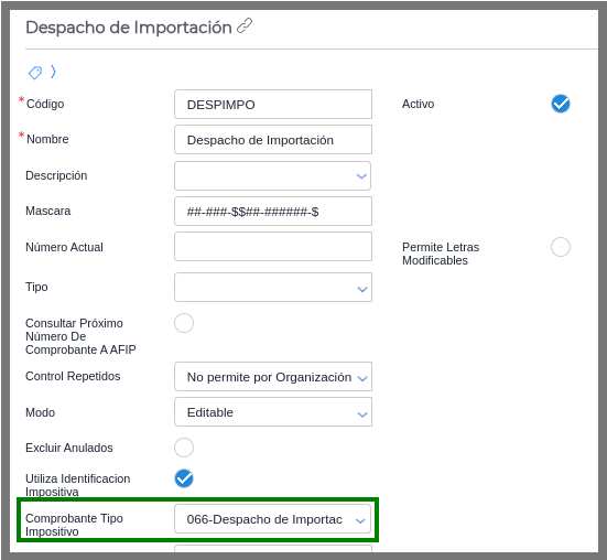 El documento de Despacho de Importación, debe tener un talonario que utilice un comprobante tipo impositivo cuyo código sea 066.