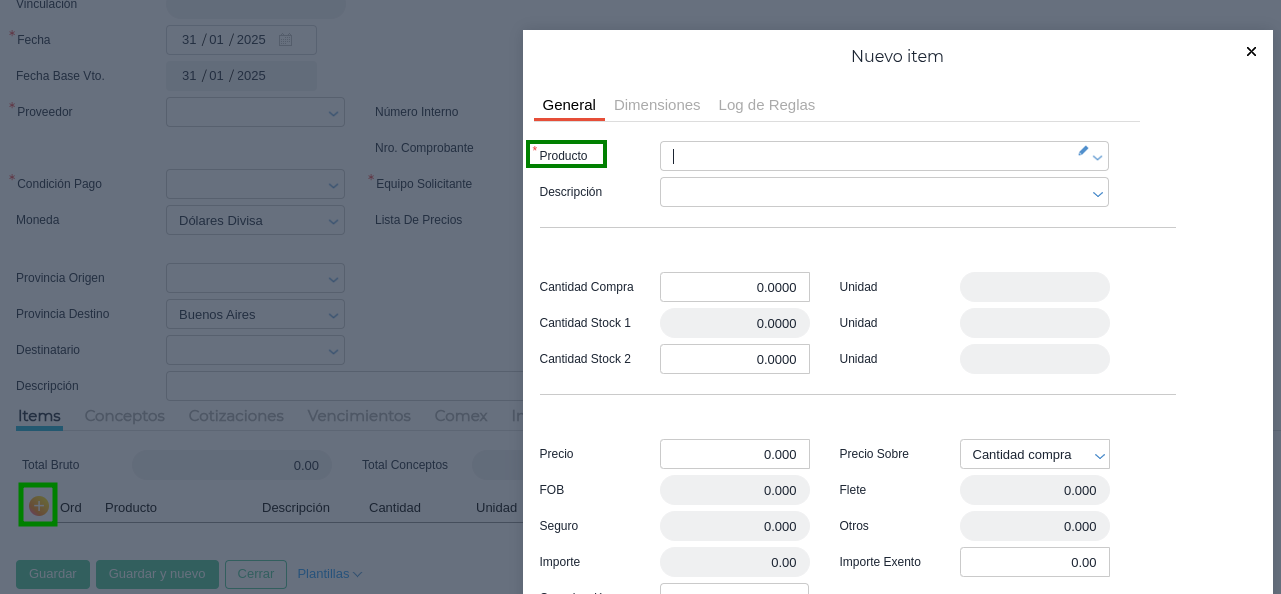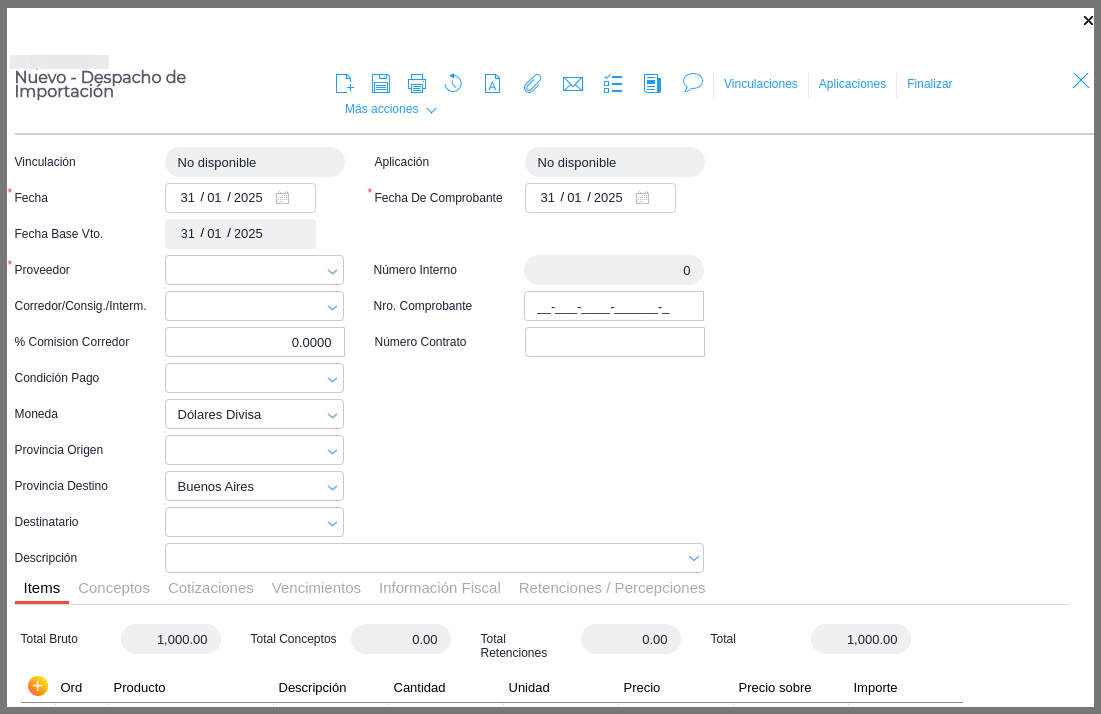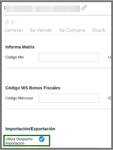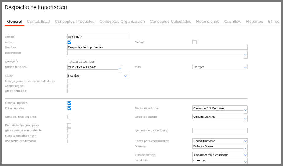 También debe tener activo el checkbox Utiliza Despacho de Importación.
