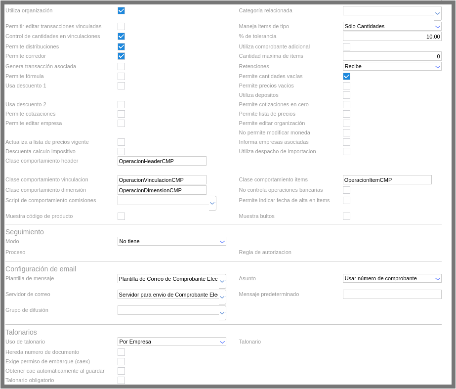 Se accede desde Menú → Configuración → Empresas → Configuración → Talonarios