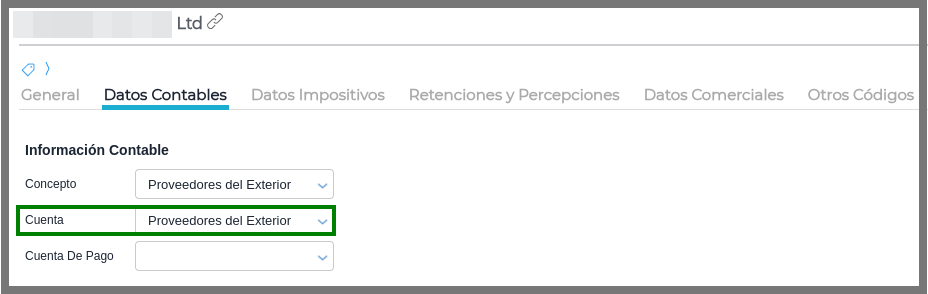 Para evitar confusiones, es recomendable que los Proveedores del Exterior tengan una cuenta distinta a los Proveedores Nacionales. En el ejemplo que se muestra, la cuenta de los Proveedores del Exterior es Proveedores del Exterior.