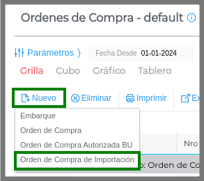 Se crean las Órdenes de Compra de Importación, indicando los productos que se desean importar.