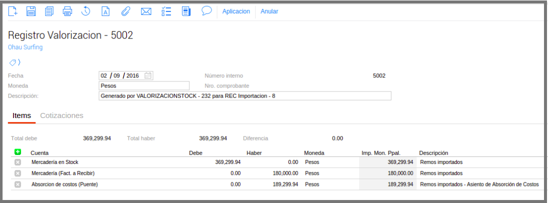 Al finalizar el proceso de importación, y a los efectos de calcular el costo de los productos, se debe realizar el proceso de absorción de costos.