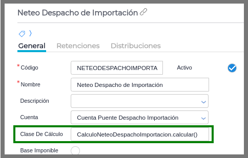Clase de cálculo: CalculoNeteoDespachoImportacion.calcular()