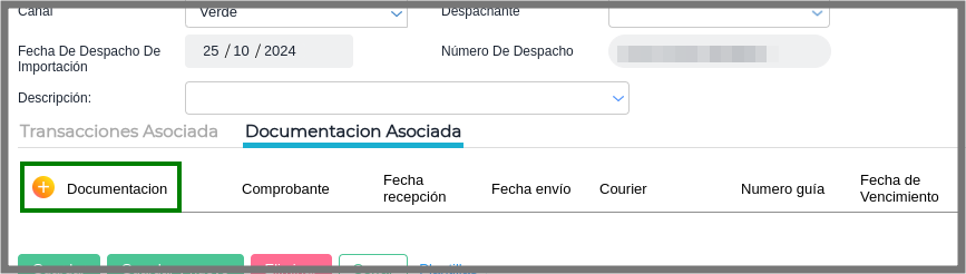 - Fecha de Despacho de Importación: esta fecha se completa cuando se genere el Despacho.