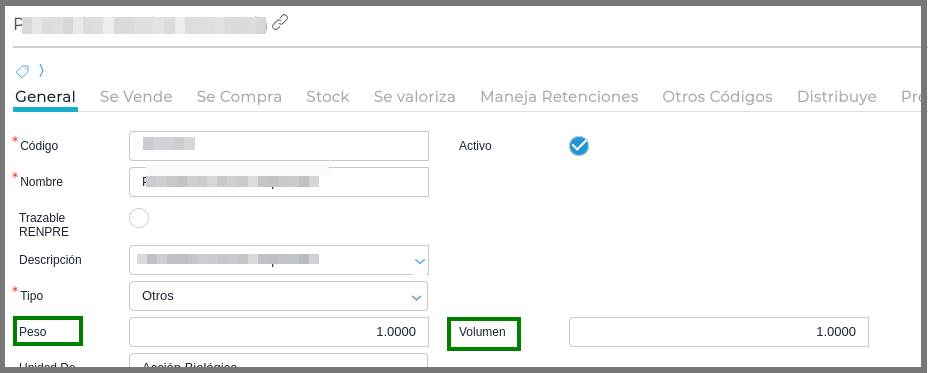 En el producto se pueden ingresar las equivalencias de peso y volumen para poder hacer la absorción. Estas equivalencias se utilizan al momento de realizar la absorción.