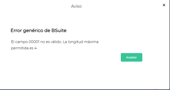 “El campo 00001 no es válido. La longitud máxima permitida es 4”