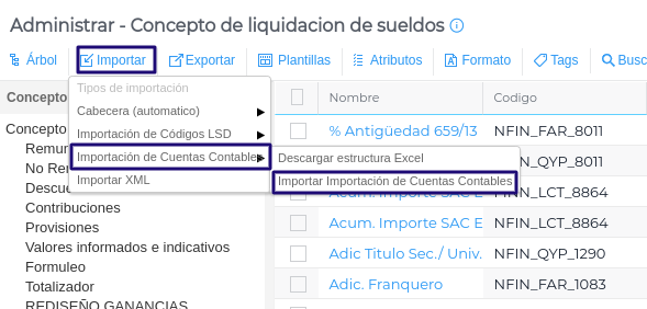Consulta: ¿Cómo configurar masivamente las cuentas contables en los conceptos de liquidación?
