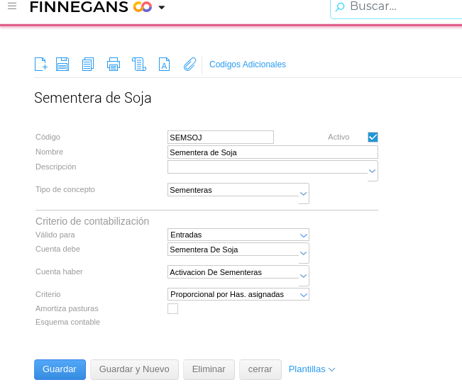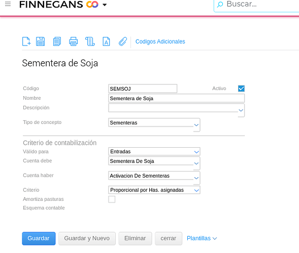 Cuenta haber: en este campo se debe indicar la cuenta de resultado activación de sementera.