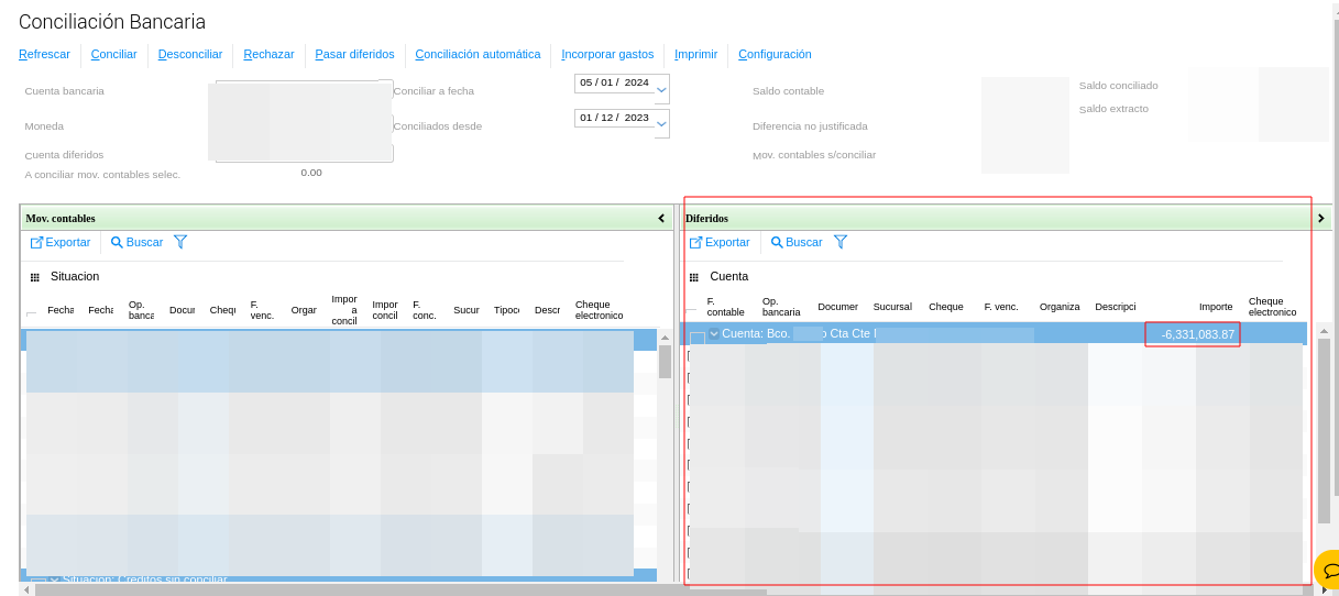 Con estos cambios ya debería poder realizar el pasaje a diferidos de manera manual o automática, del los cheques y no figurarán en la columna de Diferidos en la Conciliación Bancaria.