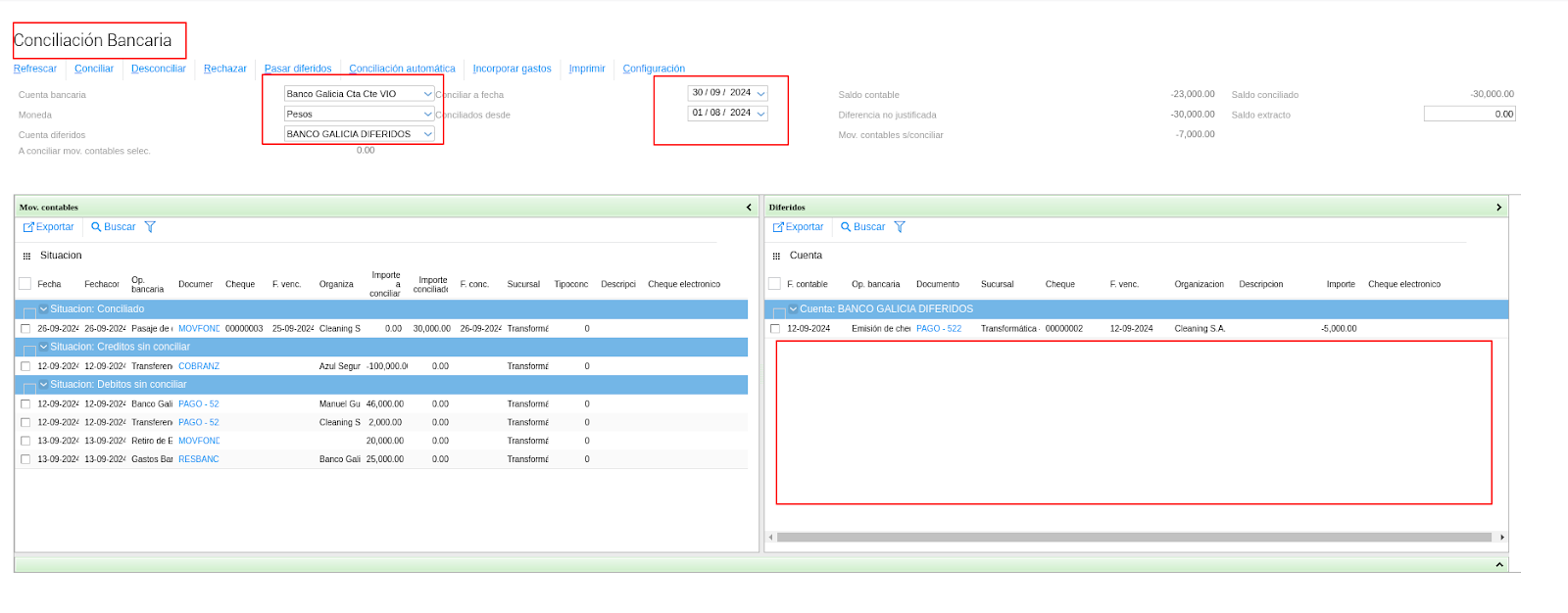 Uno de los motivos por el cual no aparecen los cheques en el apartado de diferidos es porque el estado del “Tipo de Operación Bancaria” utilizado en la transacción difiere del estado configurado en la “Conciliación Bancaria”, para el traspaso de cheques diferidos.