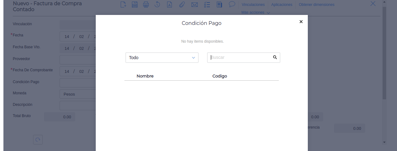 Al ingresar una Factura contado el sistema no muestra la Condición de Pago.