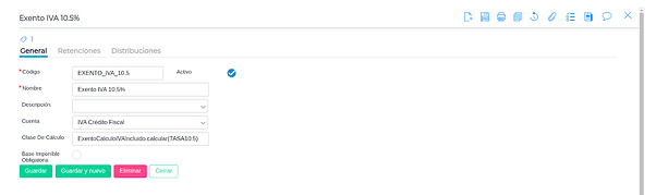 - ExentoCalculoIVAIncluido.calcular(TASA10.5)