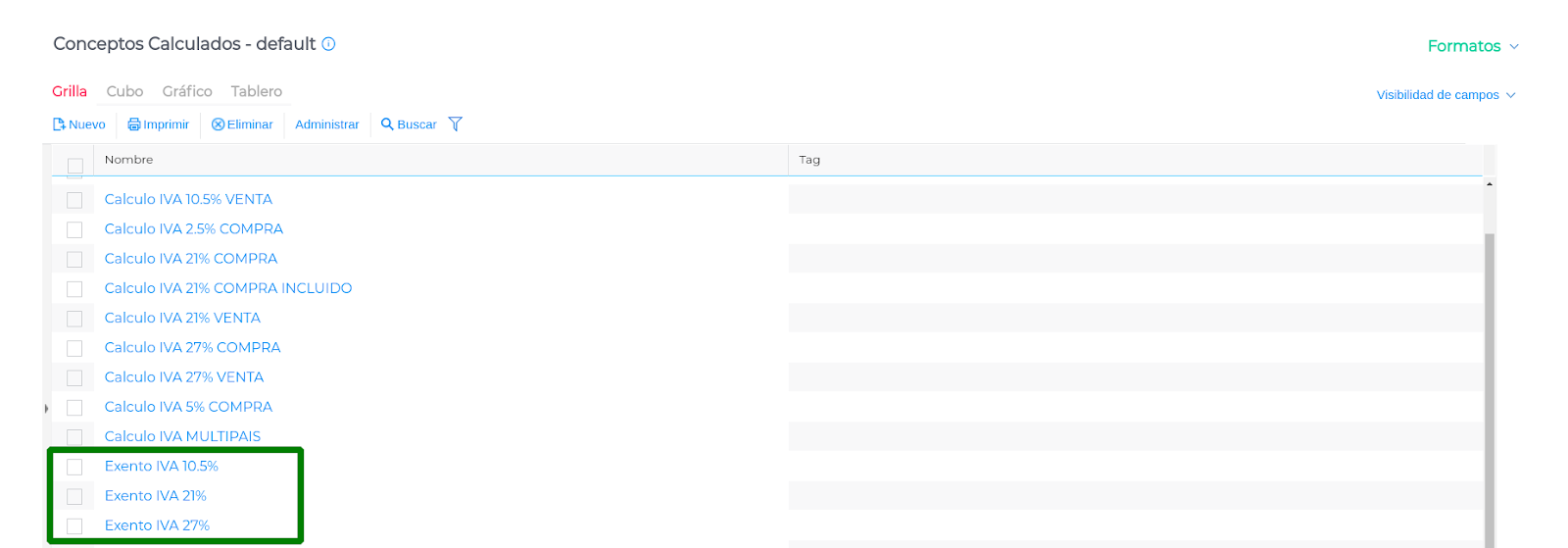 Dentro del concepto que agregamos, tenemos que configurarlo de la siguiente manera:
