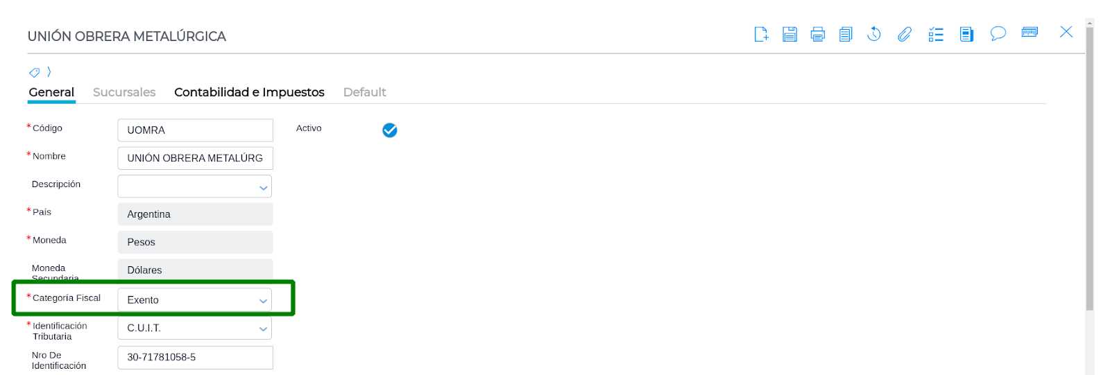 Maestro de Categorías Fiscales