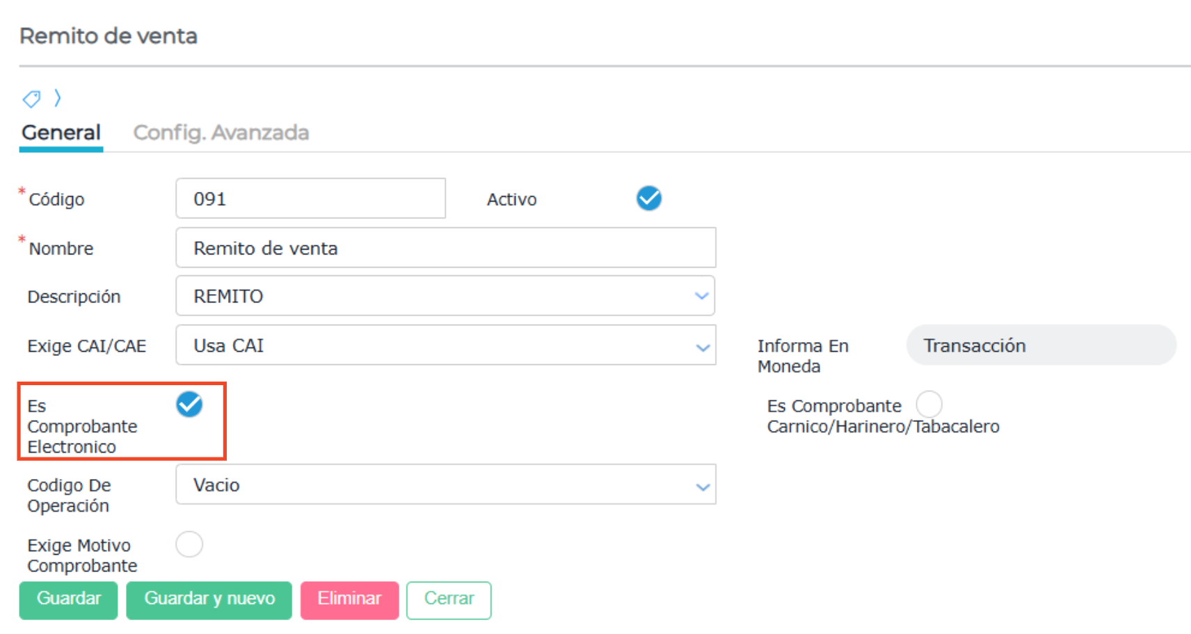 Para agregar el Cod. De Barras en los Despachos se debe configurar el Comprobante Tipo impositivo o que use el Talonario configurado en el Tipo de Documento Remito de Venta.