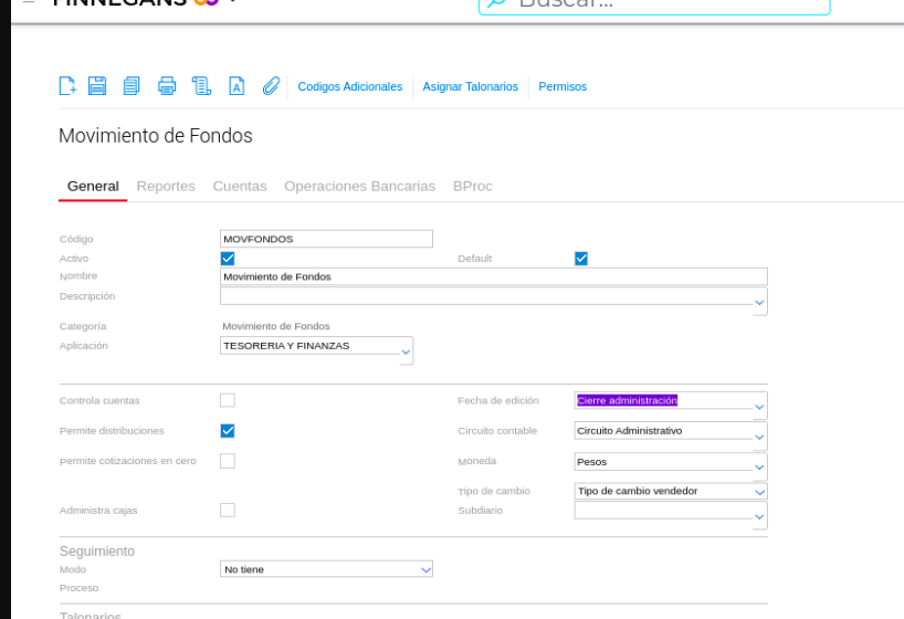 Es necesario tener configurada la fecha de edición en el tipo de documento. Esto permite que figure el tipo de documento “Movimiento de Fondos” dentro de la transacción de la factura de compra para aplicarse.