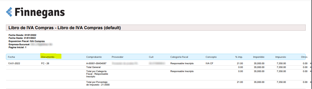 En el ejemplo “Documento” indica el código del documento y número interno. -