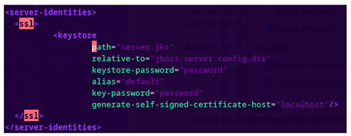 En el standalone.xml editar el apartado SSL con los datos correspondientes (wildfly/standalone/configuration/)