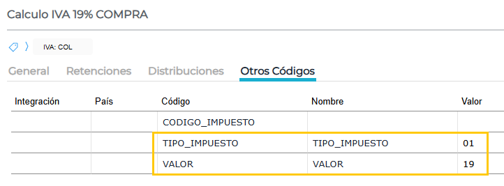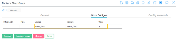 Se debe completar los códigos adicionales (solapa otros códigos) TIPO_IMPUESTO y VALOR según la siguiente tabla