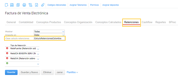 Además, deben configurarse todas las retenciones que vayan a ser utilizadas