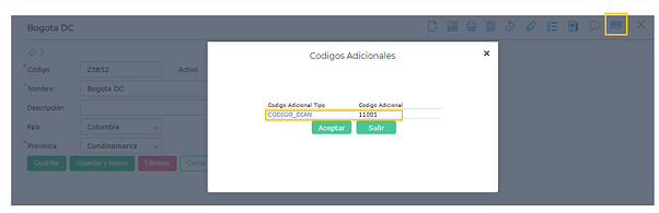 En el maestro de localidades se debe completar el código adicional CODIGO_DIAN según la siguiente tabla